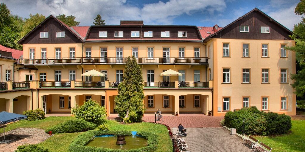 The town of Dubí is situated on the southern slopes of the Ore Mountains, 420 metres above sea level. It is only 5 kilometres away from the larger town of Teplice. In 1966 Dubí was granted spa town status. The treatment was focused on patients who had suffered strokes, patients recovering from spine and brain surgery, polio and other conditions.